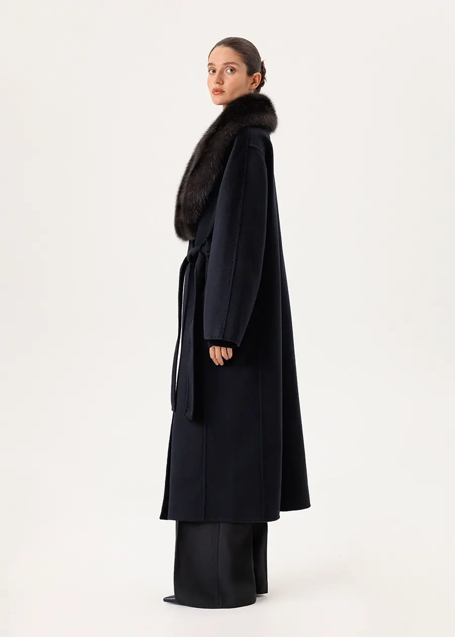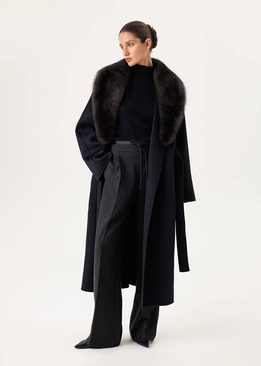 Kaschmirmantel mit eingenähtem Gürtel und Schalkragen aus Zobelfell