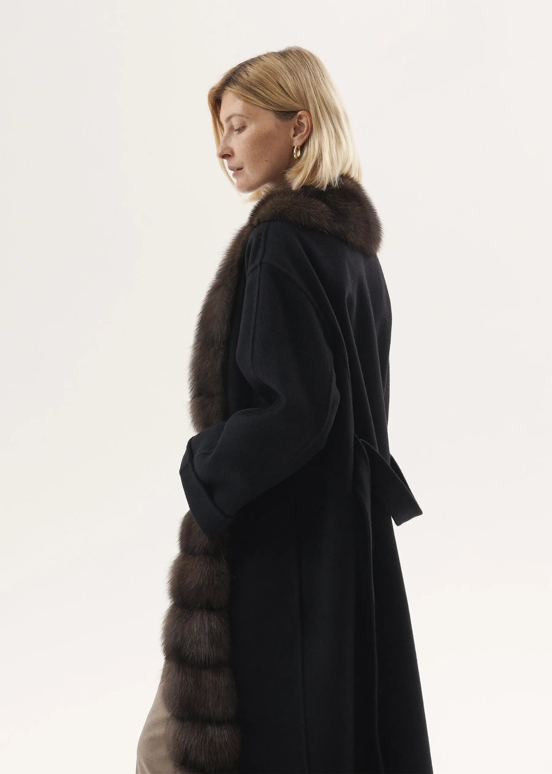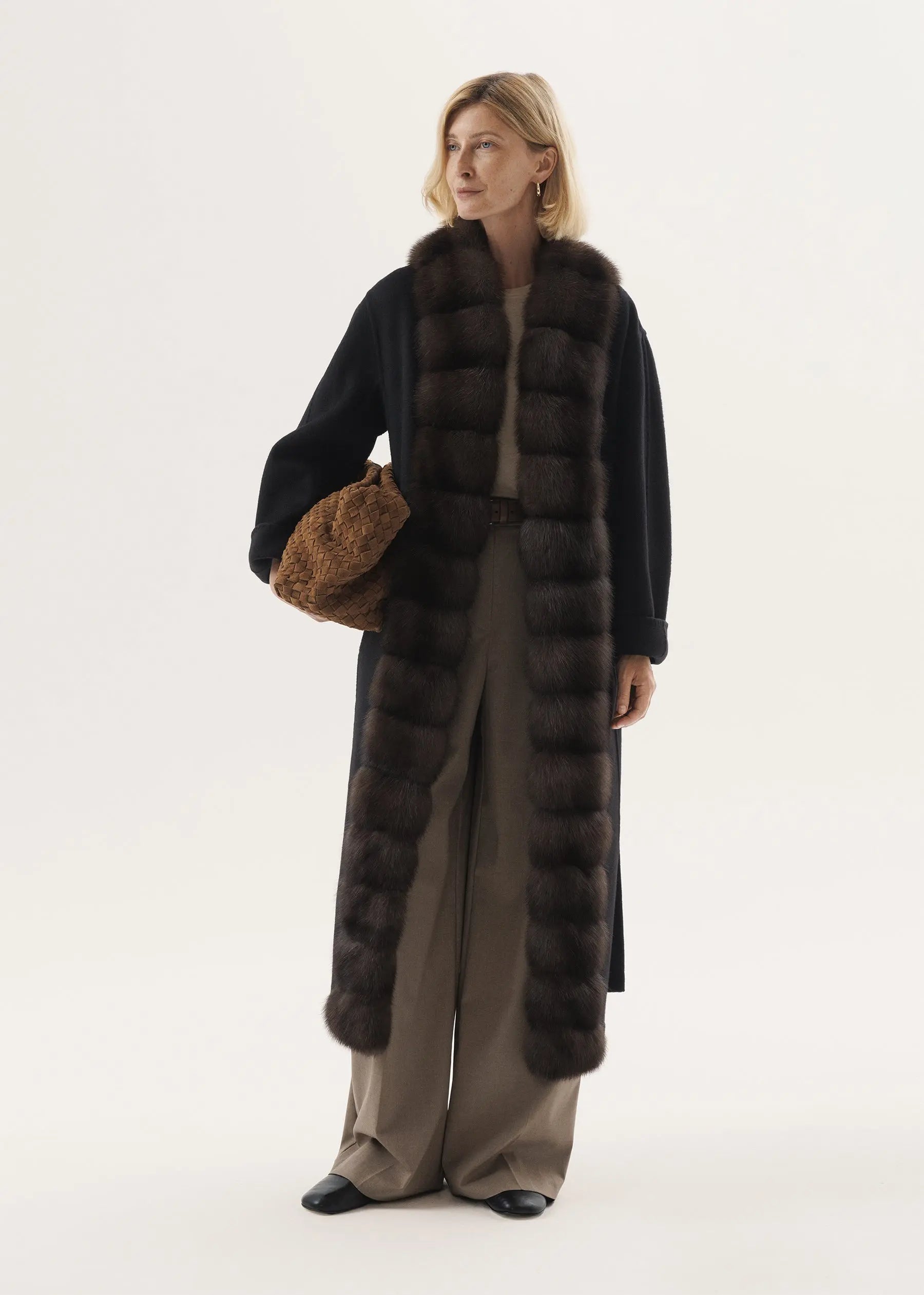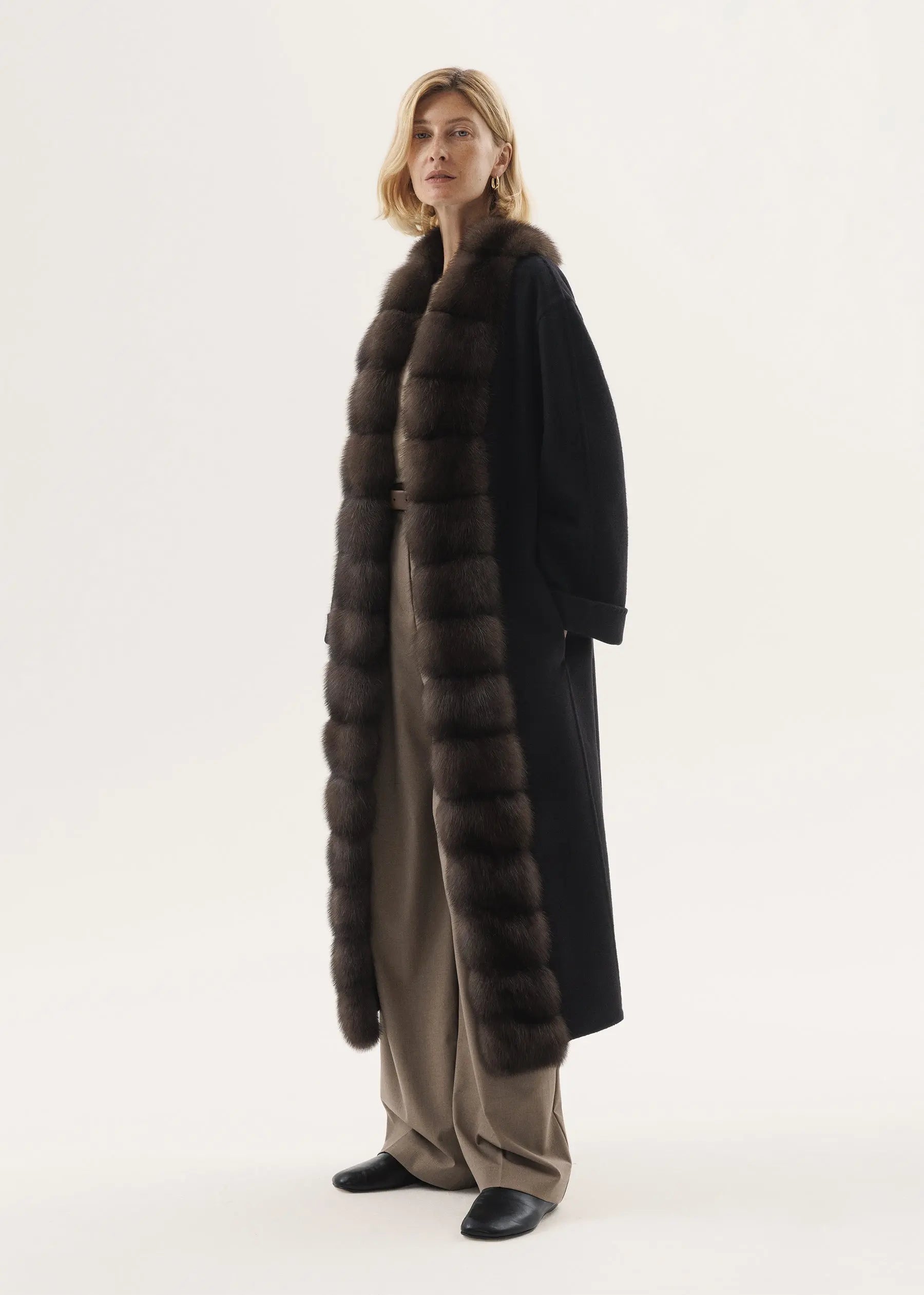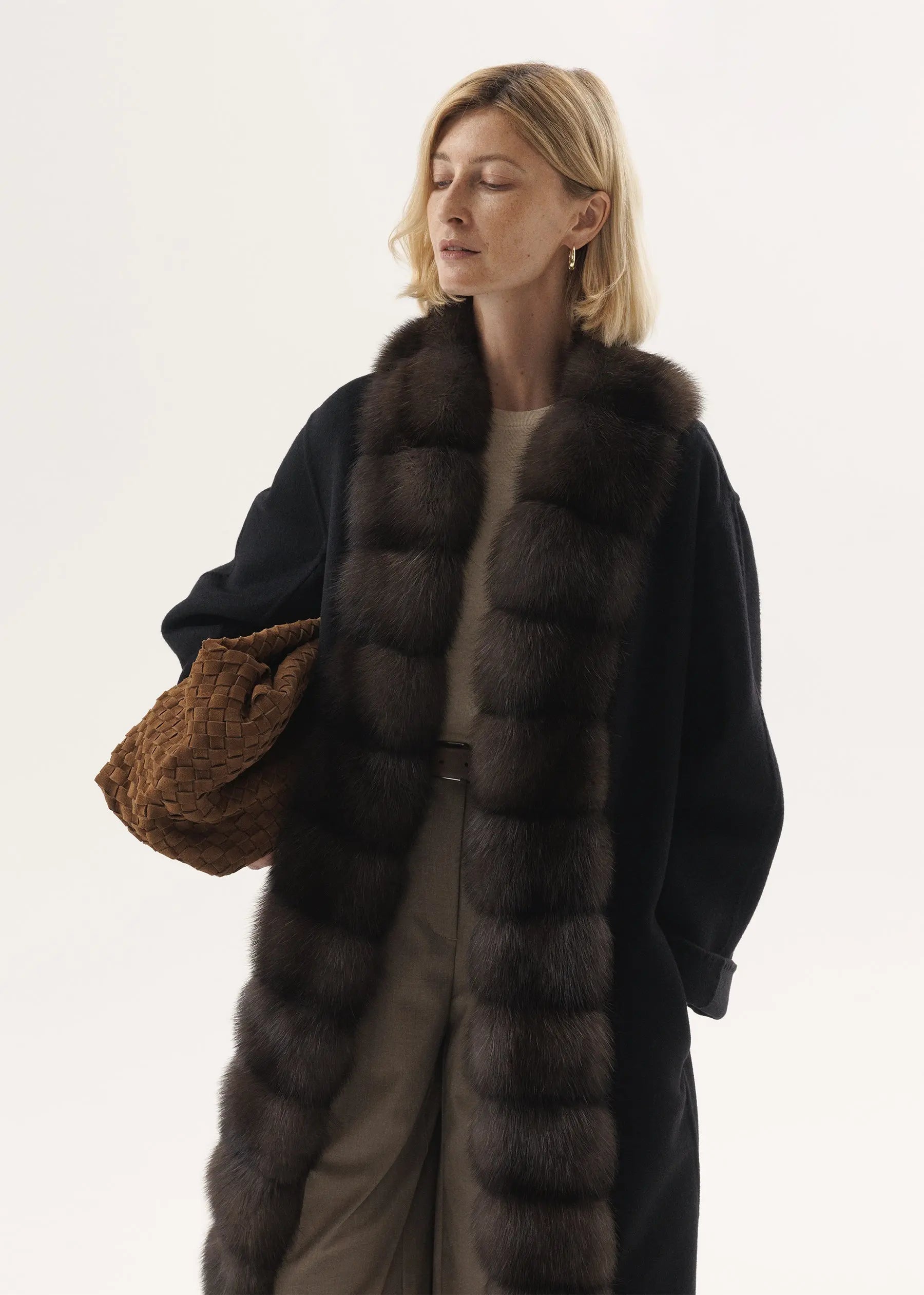 The sable fur trim on the straight-cut, long coat optically lengthens the silhouette.