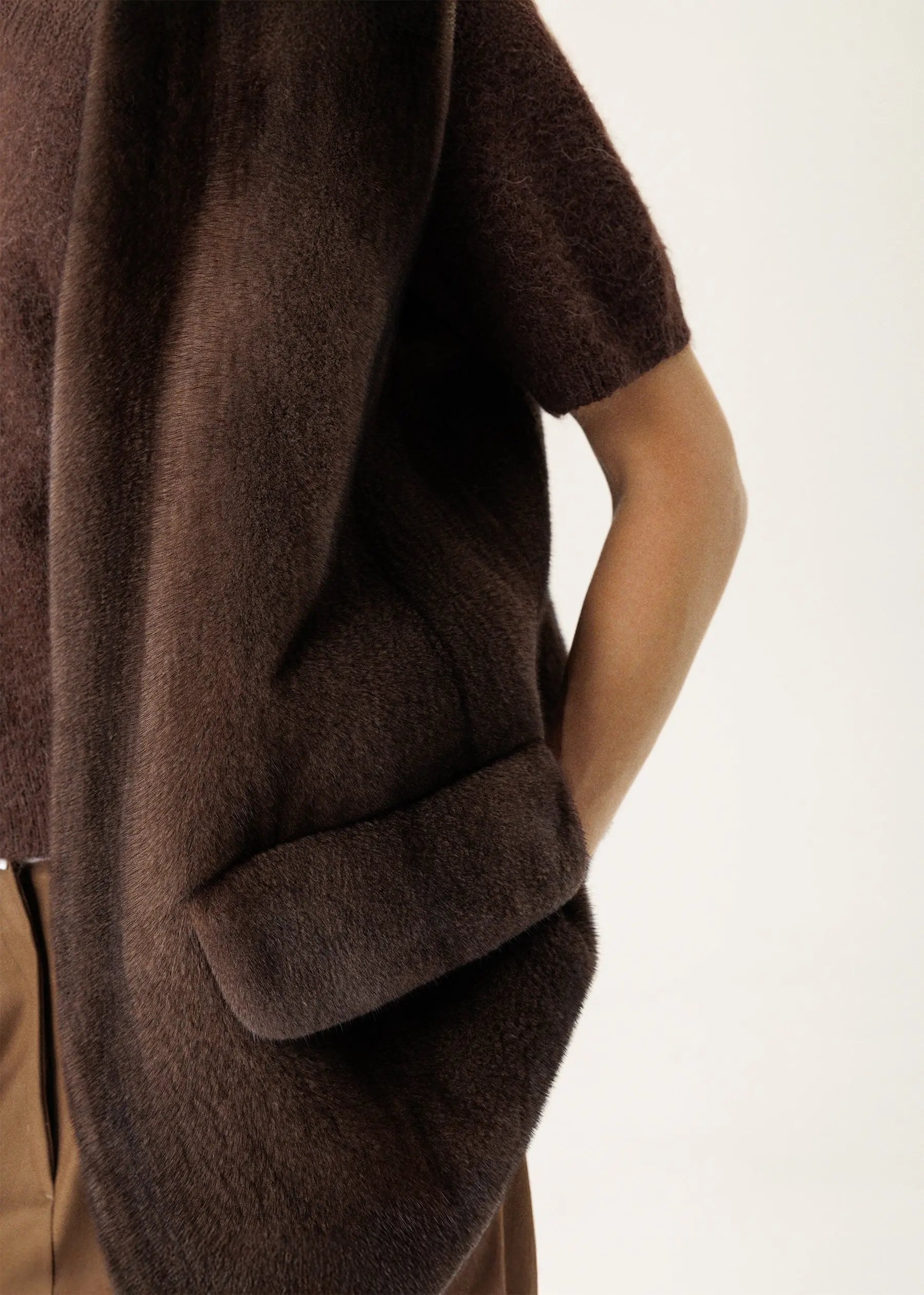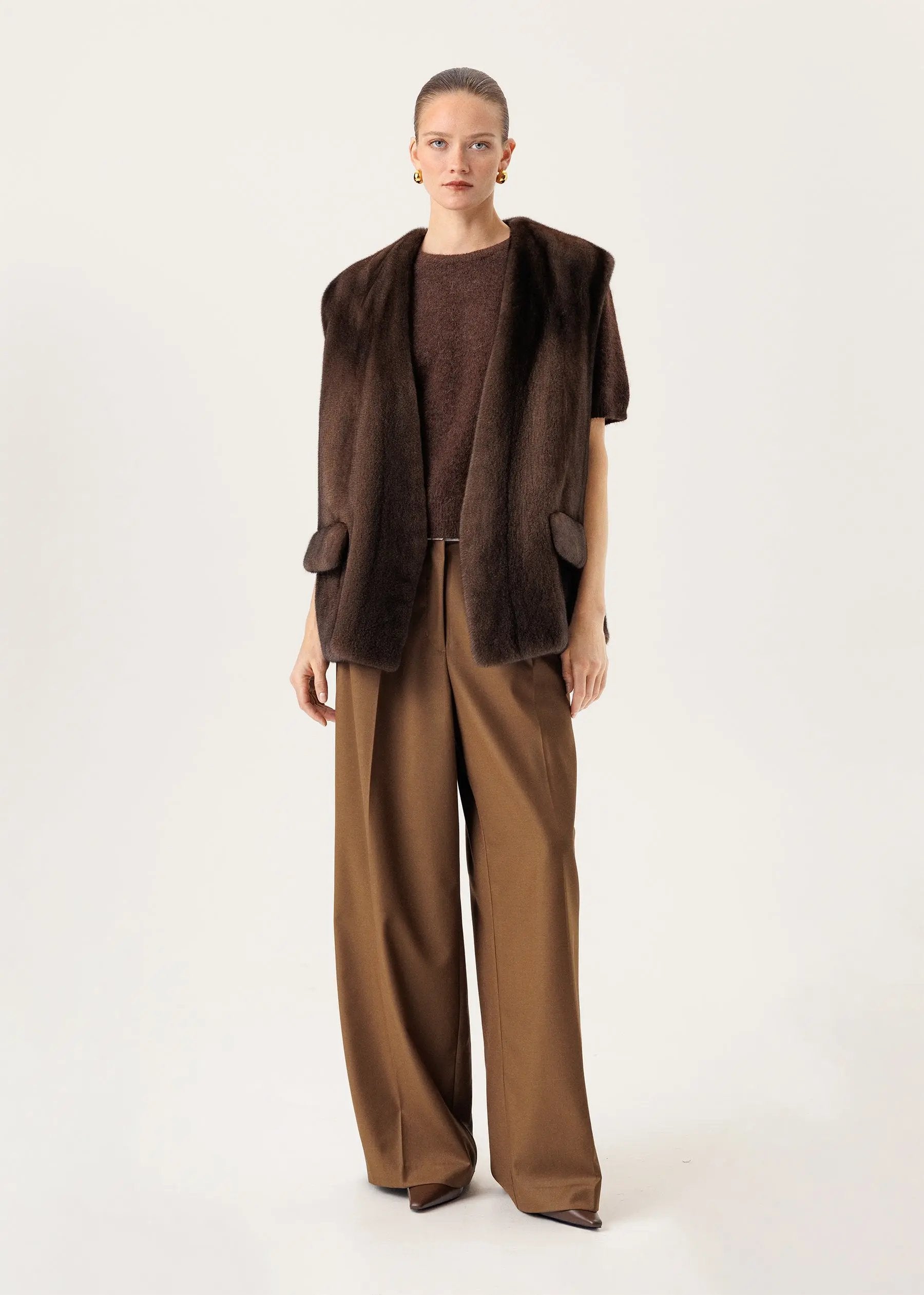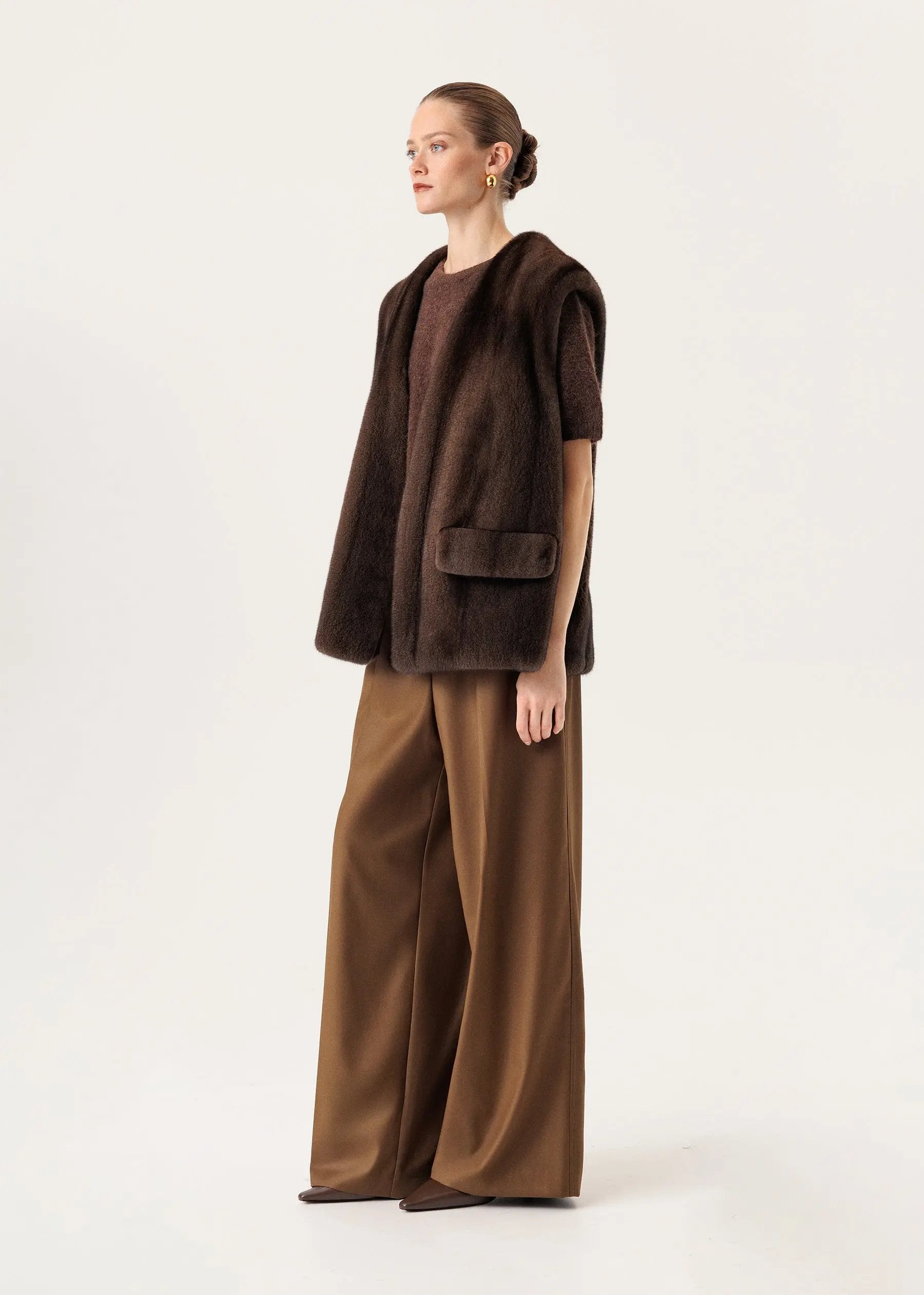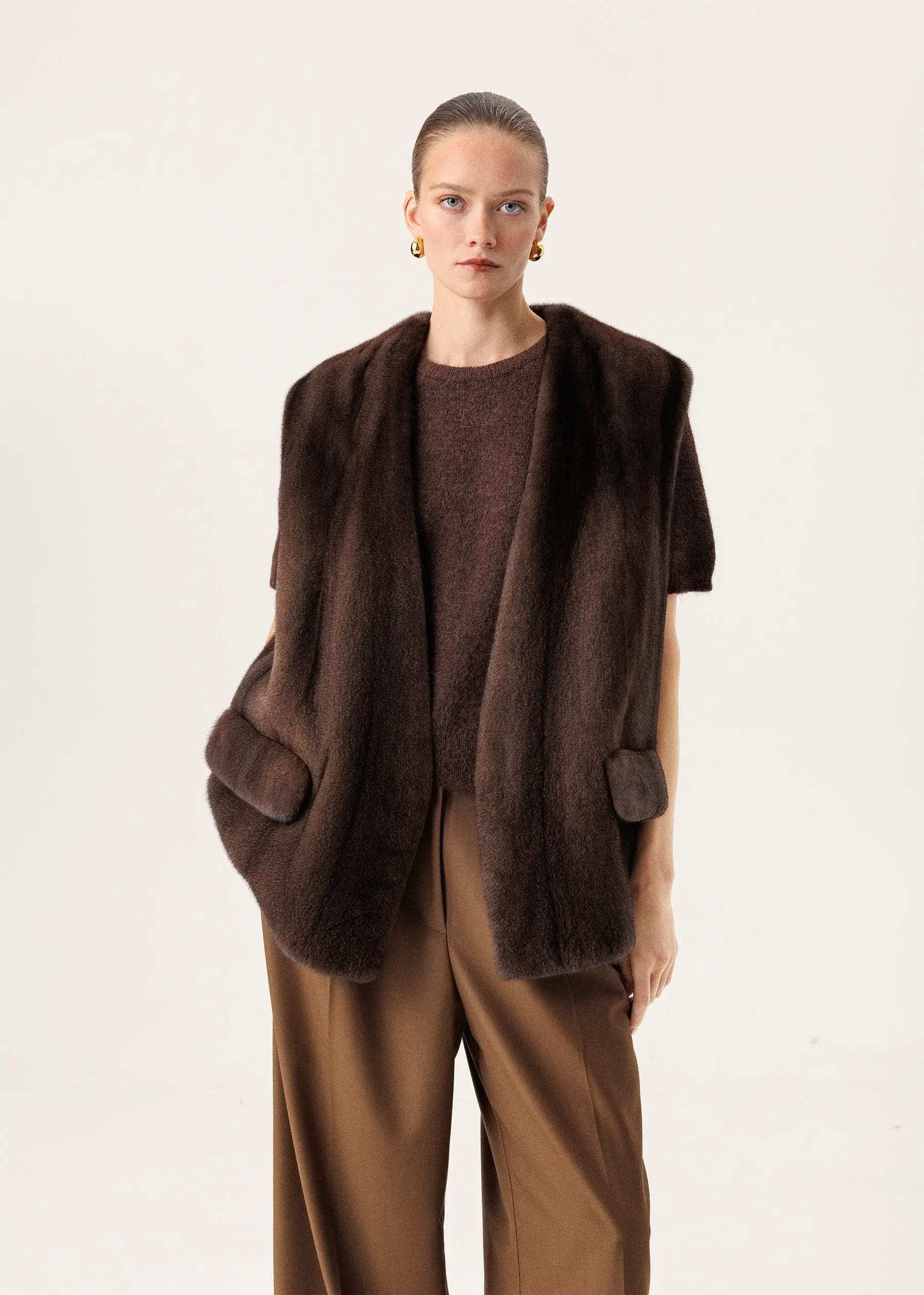 The shortened mink fur vest is made in a double-breasted style with a V-neck.