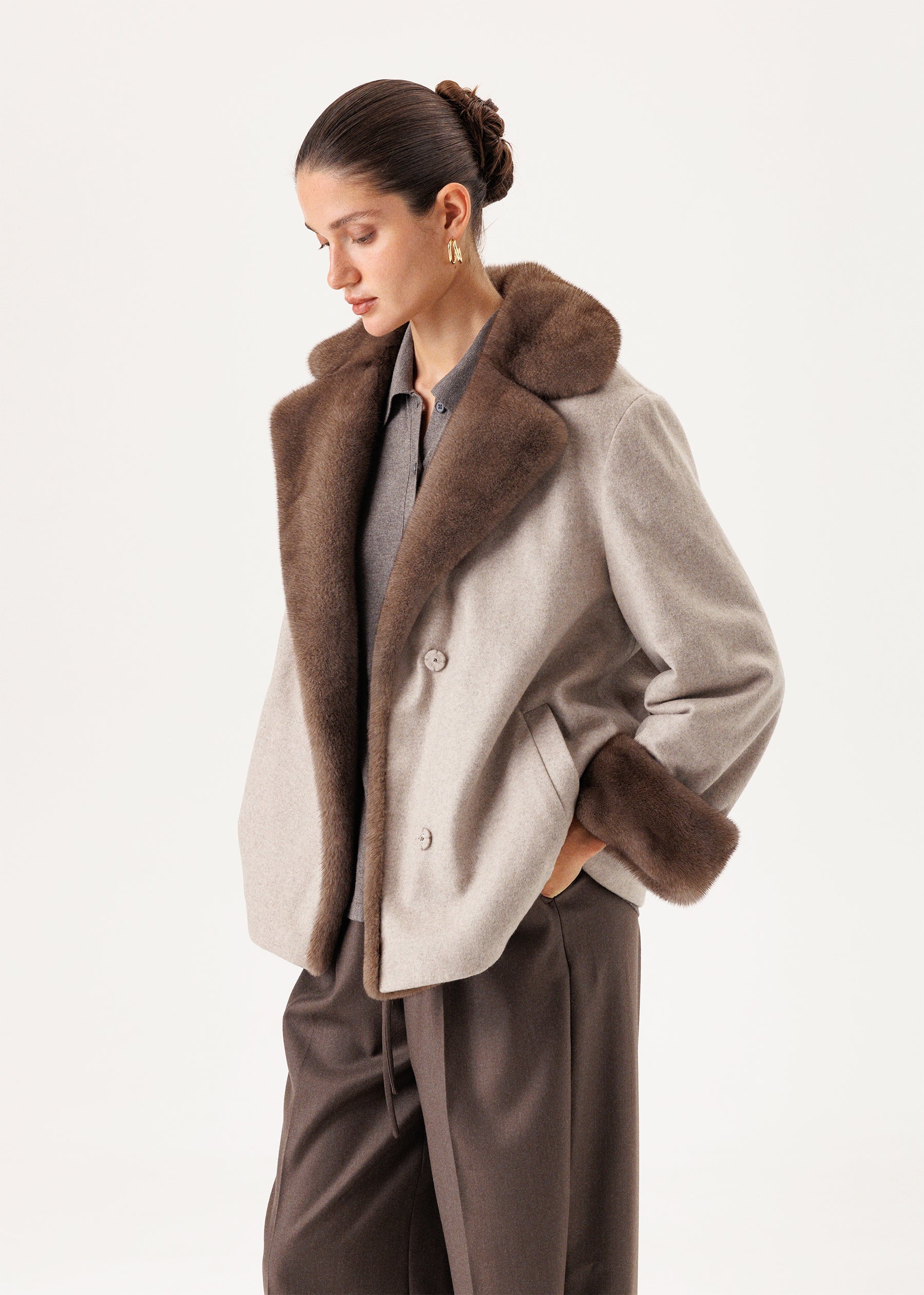 Damenjacke aus hellem Kaschmir mit Nerzfutter.