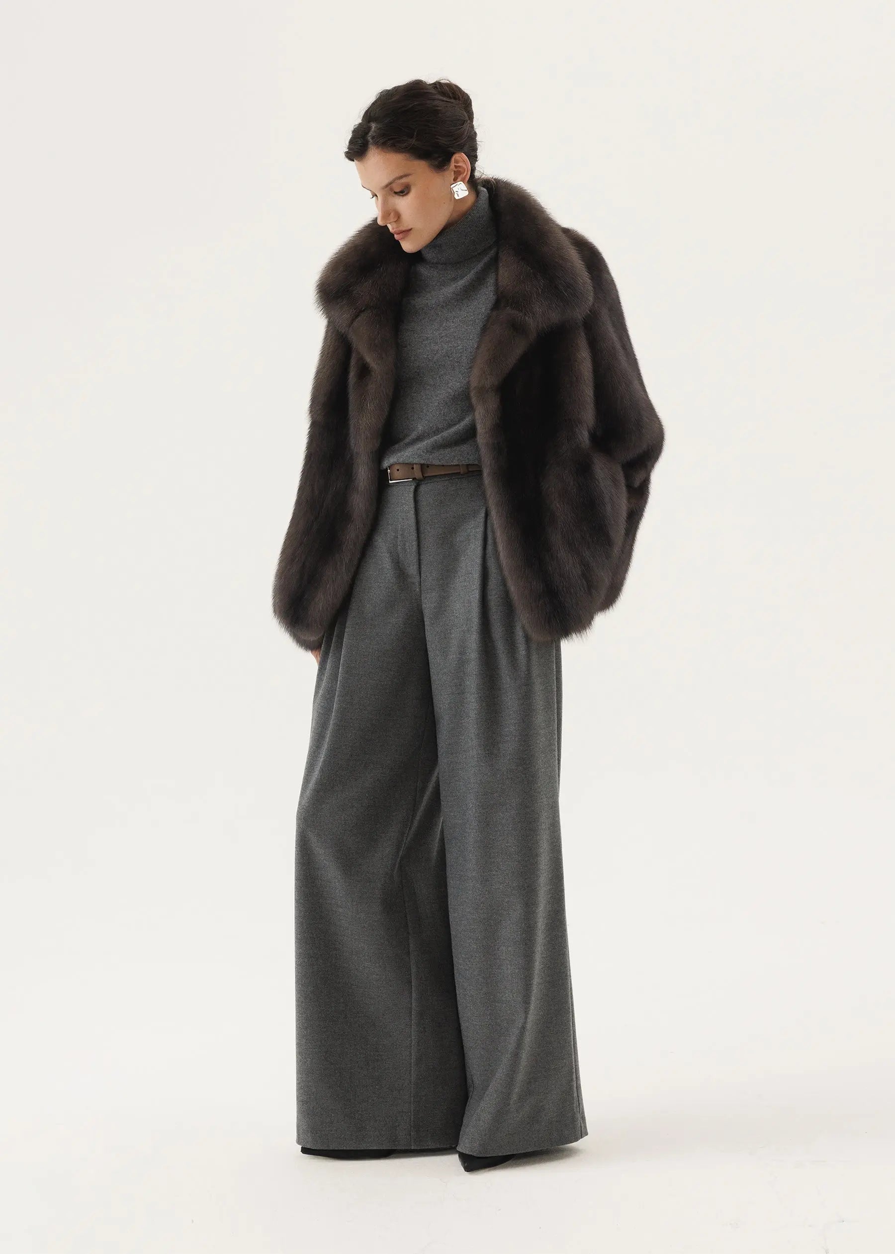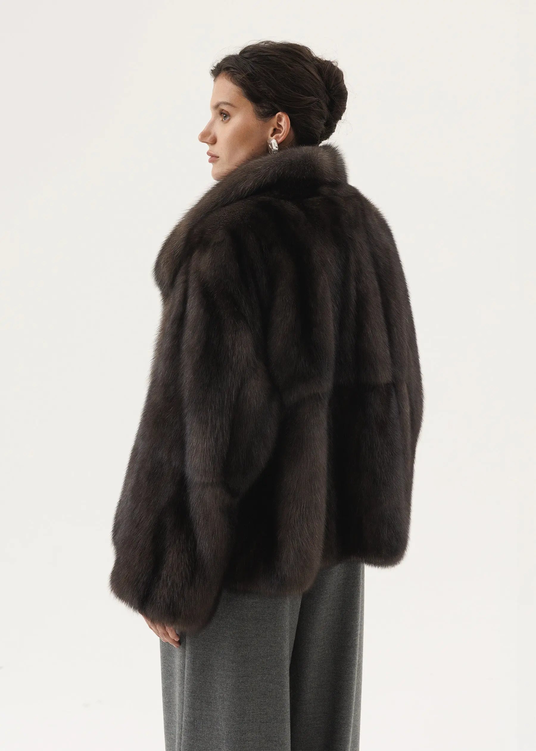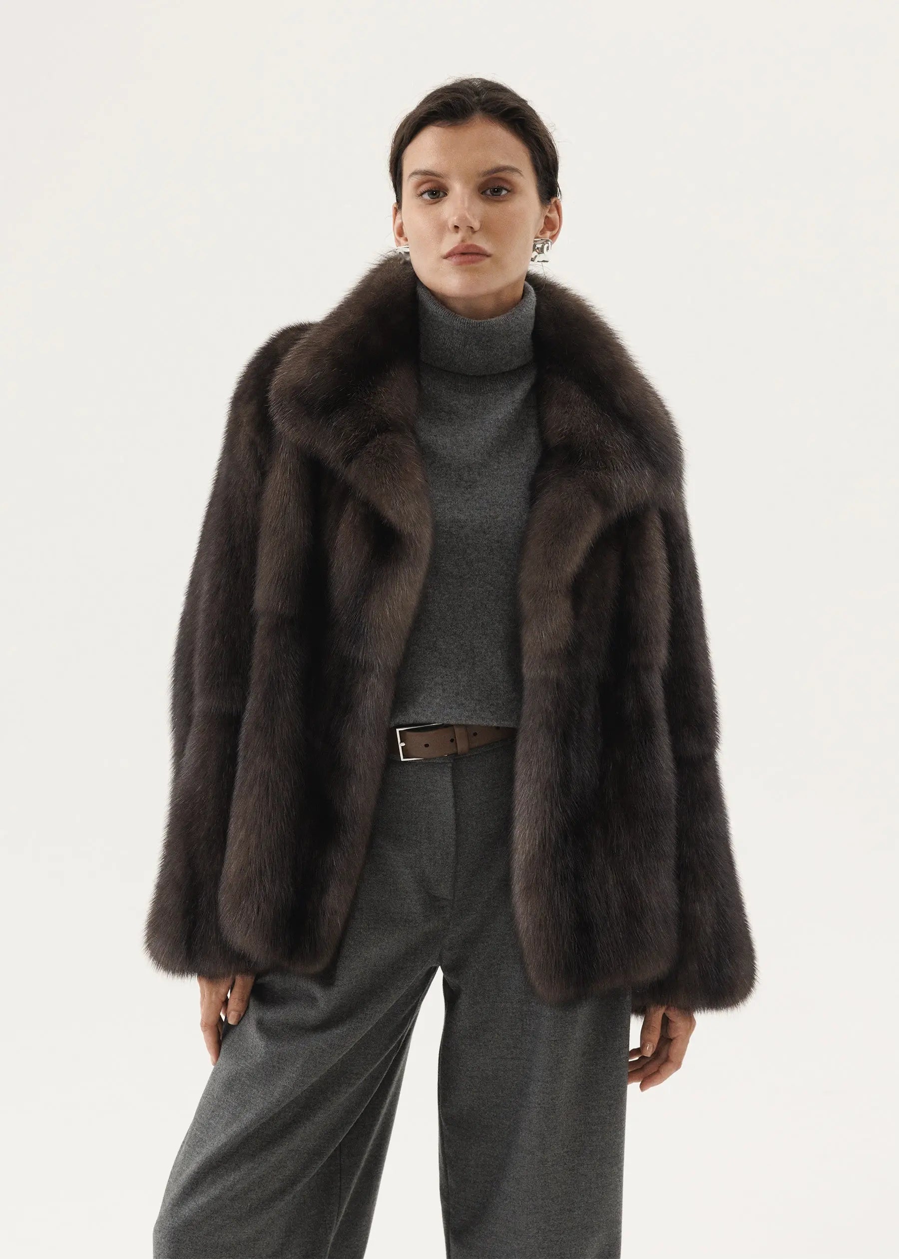 A new model in our collection is a short fur coat made of solid sable cloth.