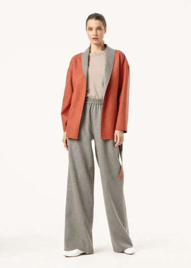 La veste est parfaitement complétée par un pantalon réversible en cachemire dans le même coloris Golden Gate Bridge / Morning Fog.