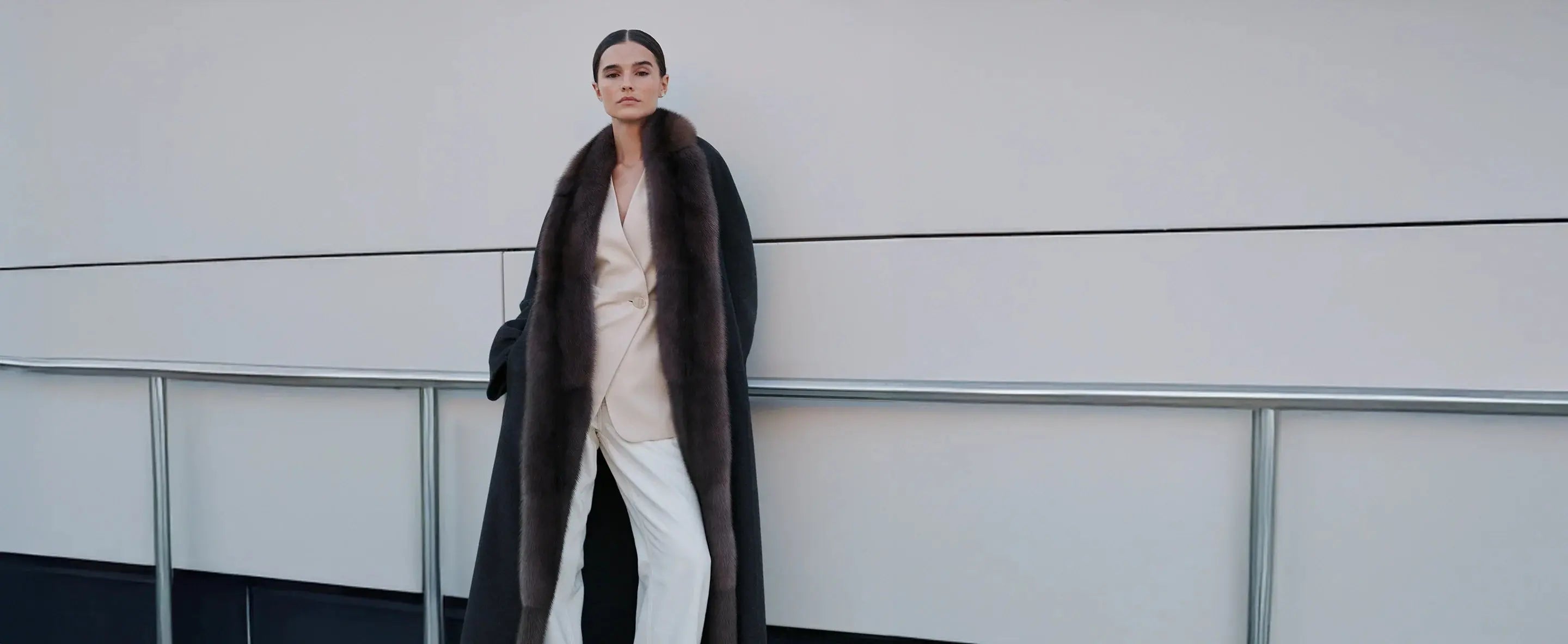 Manteau en cachemire avec fourrure de zibeline partout