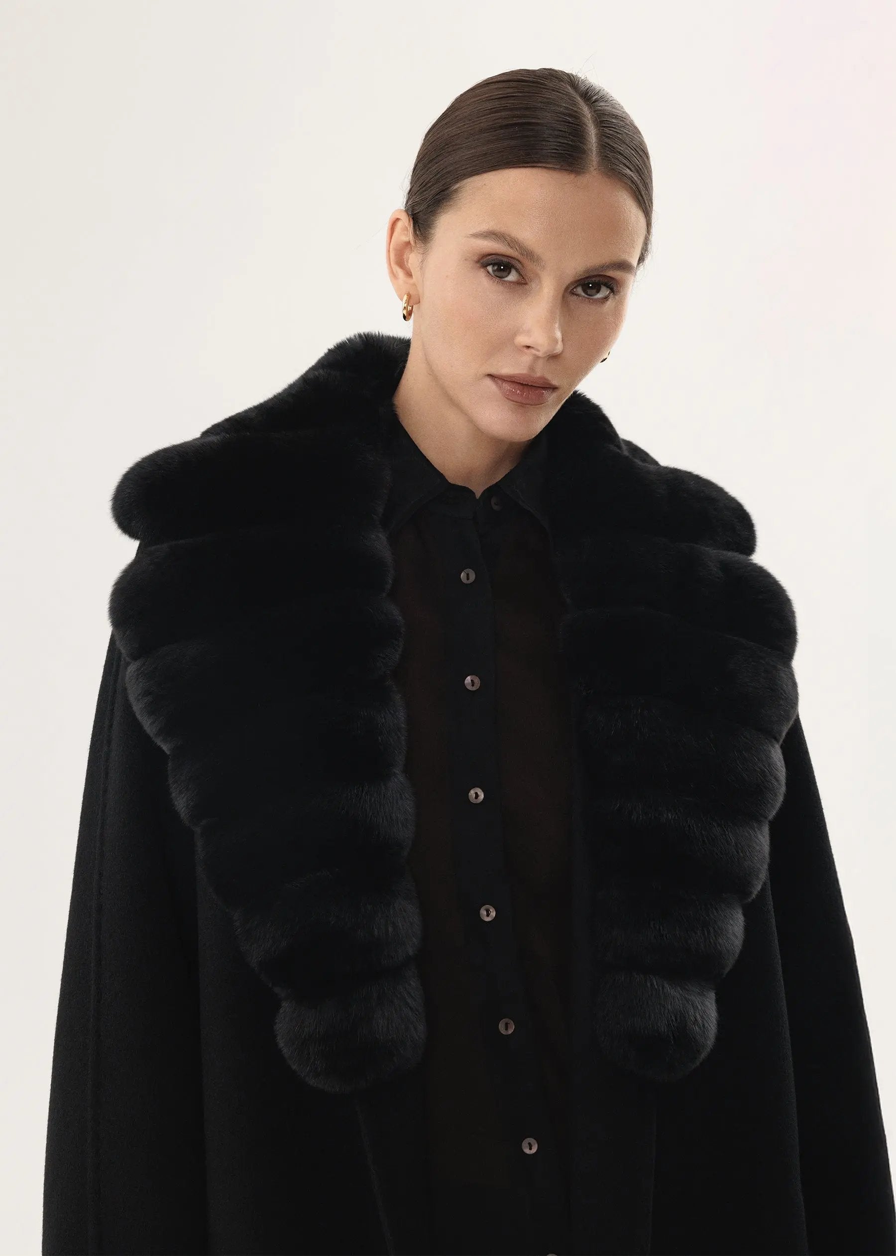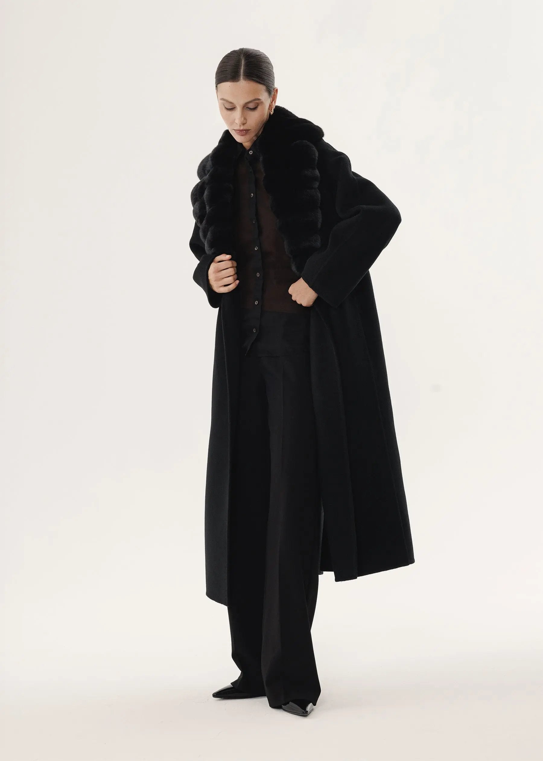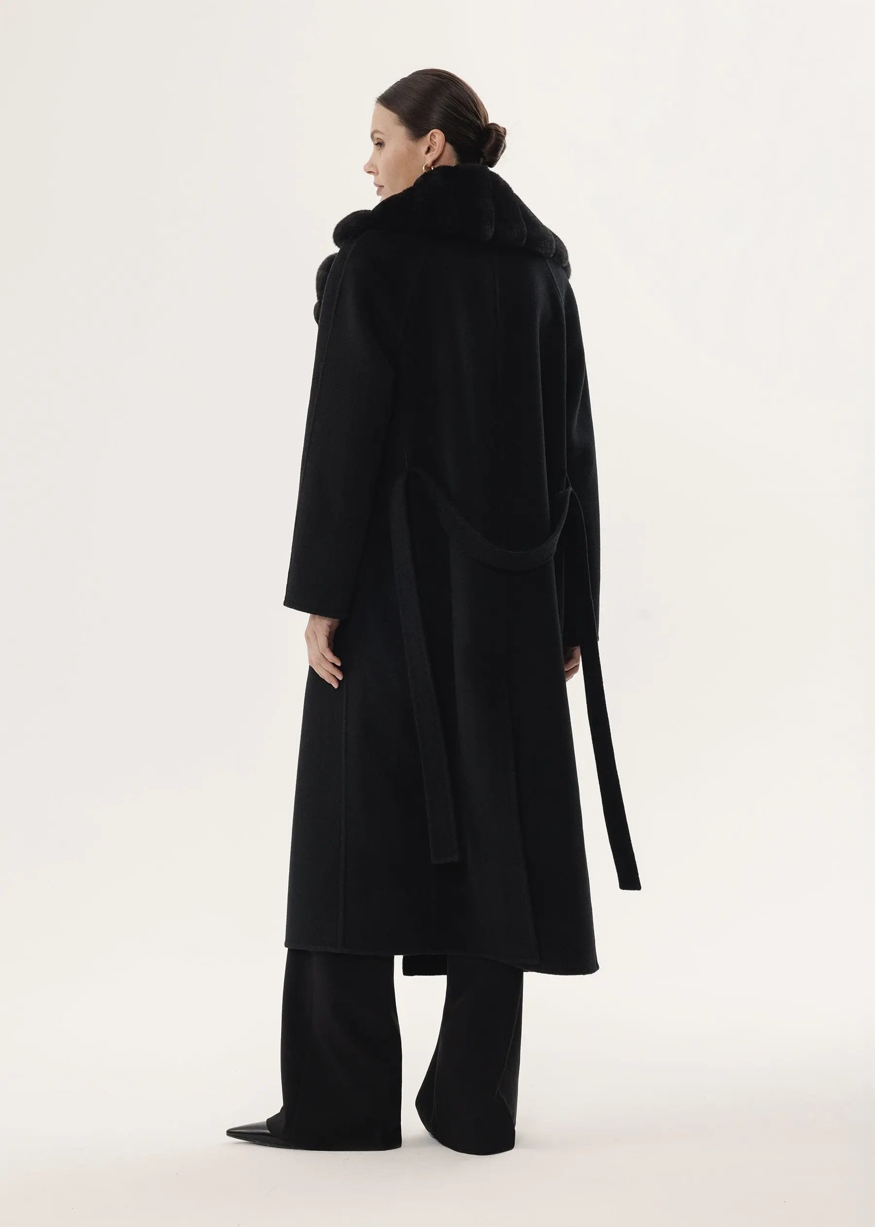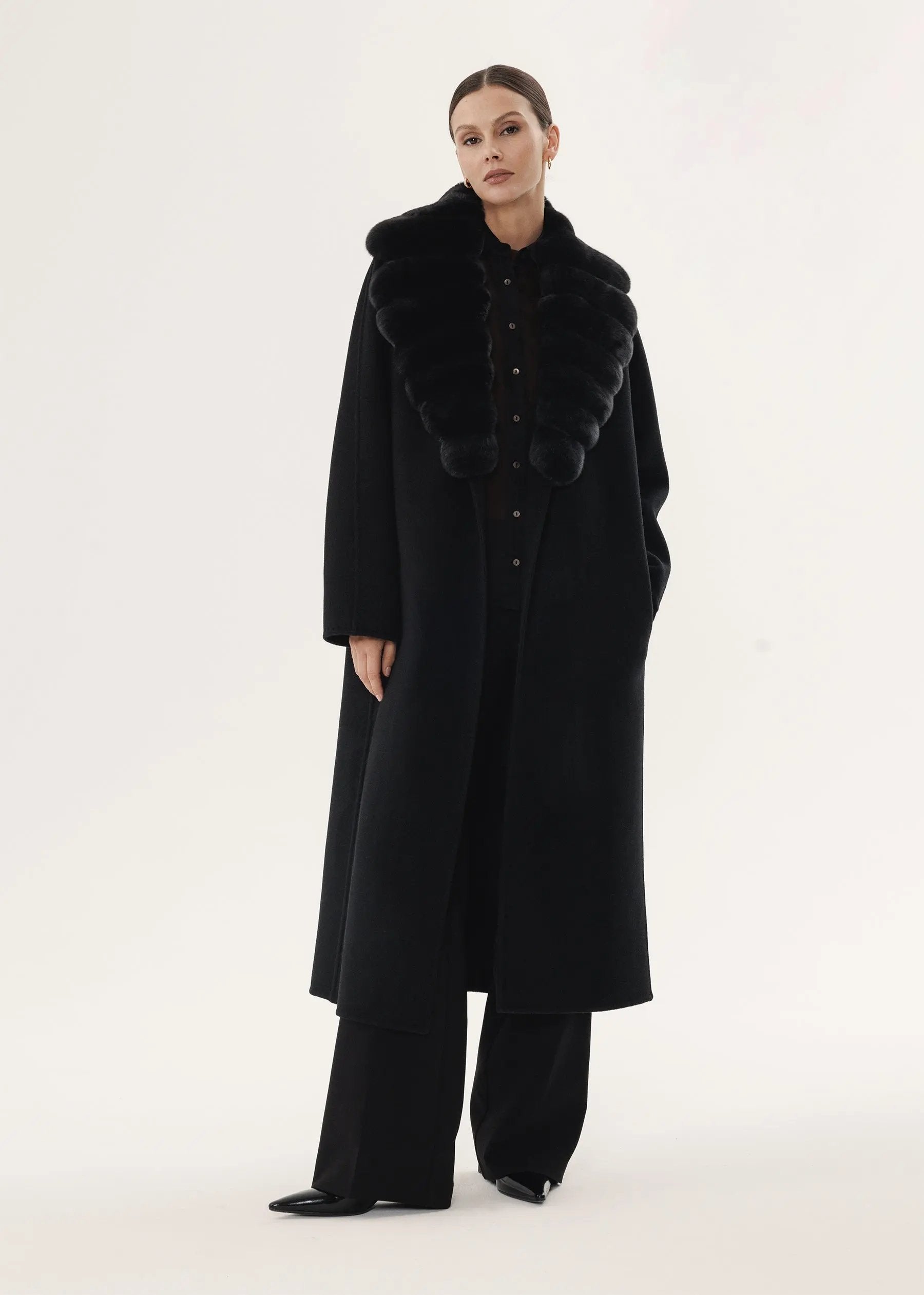 Manteau en cachemire noir avec col en fourrure de chinchilla