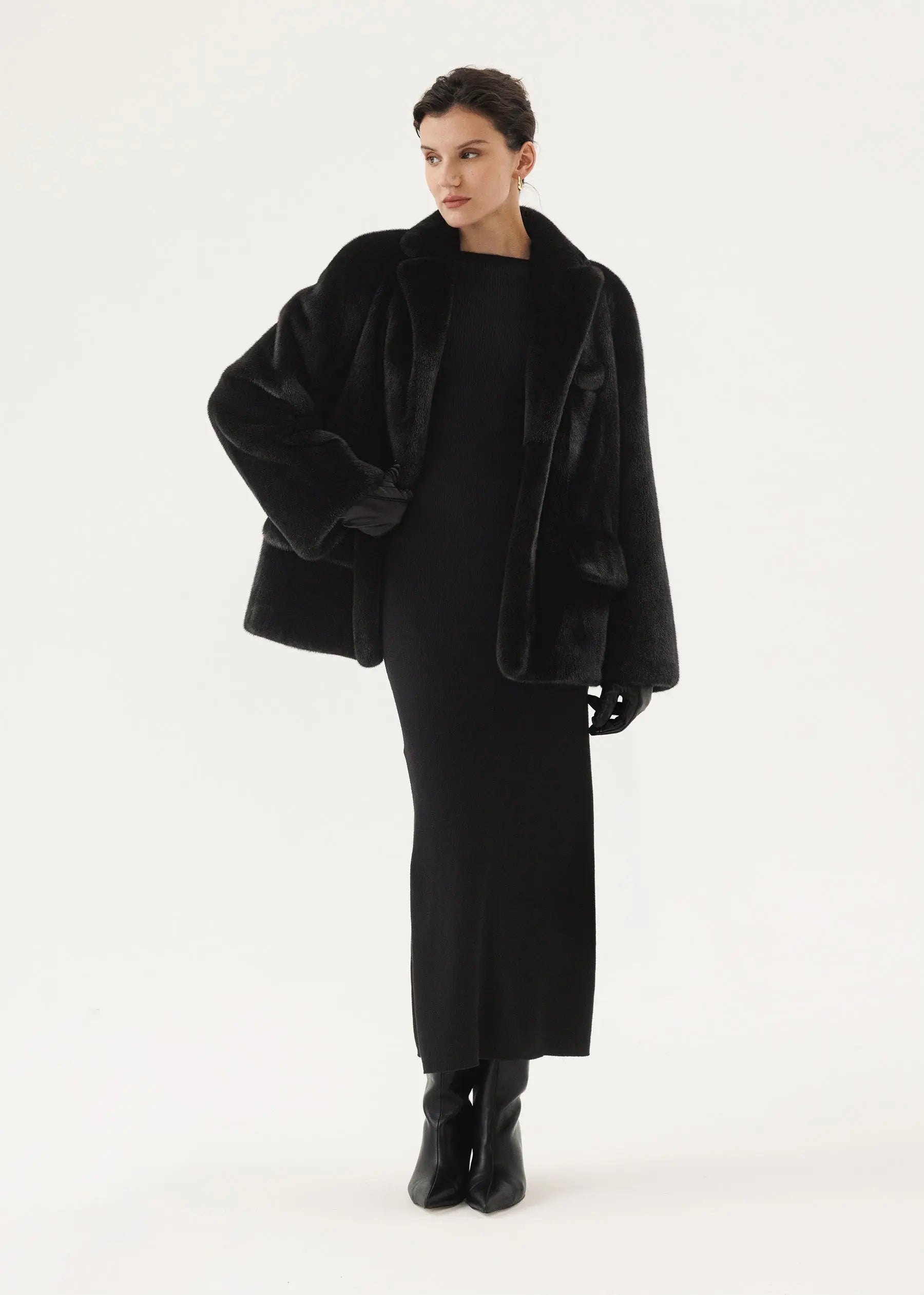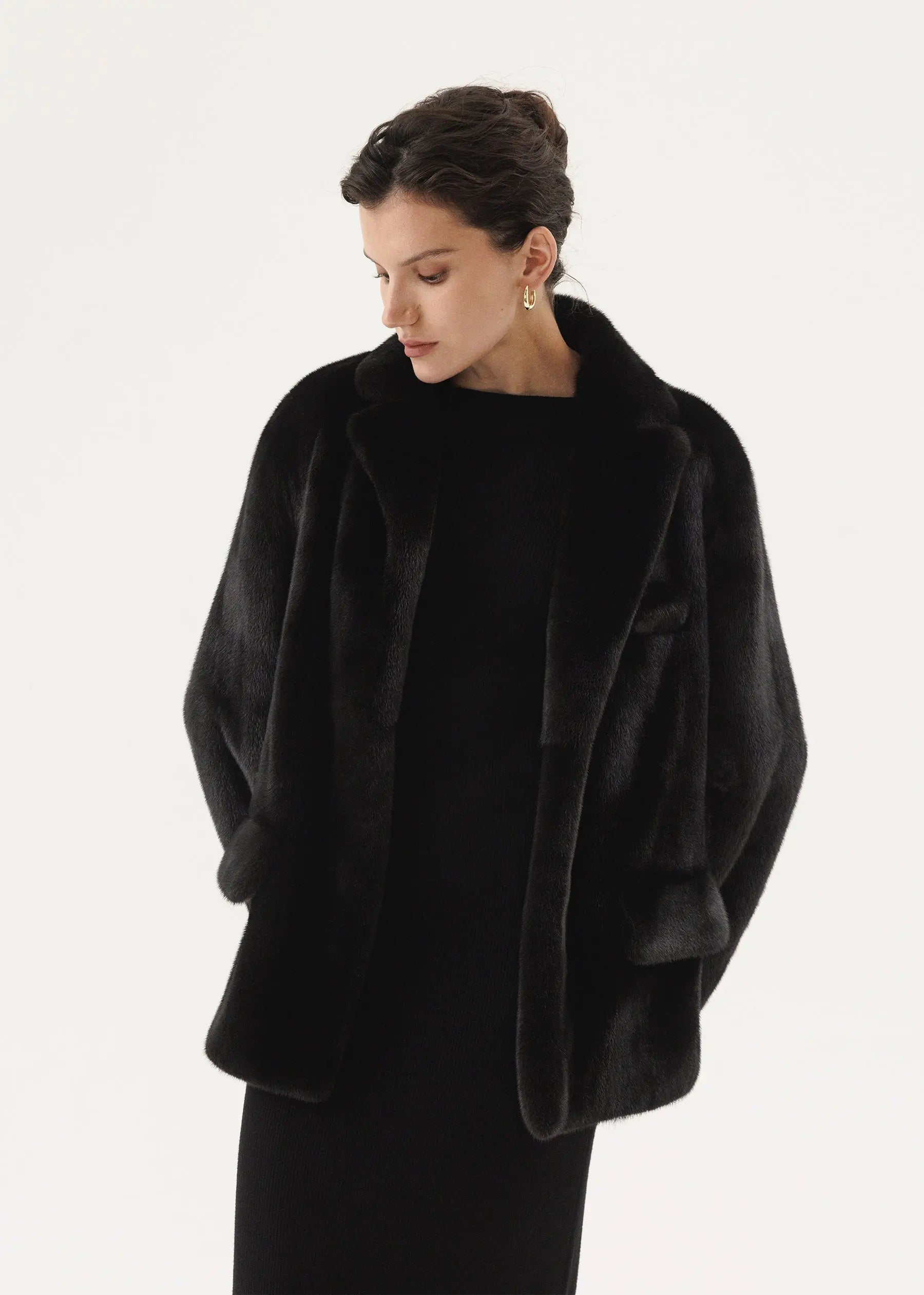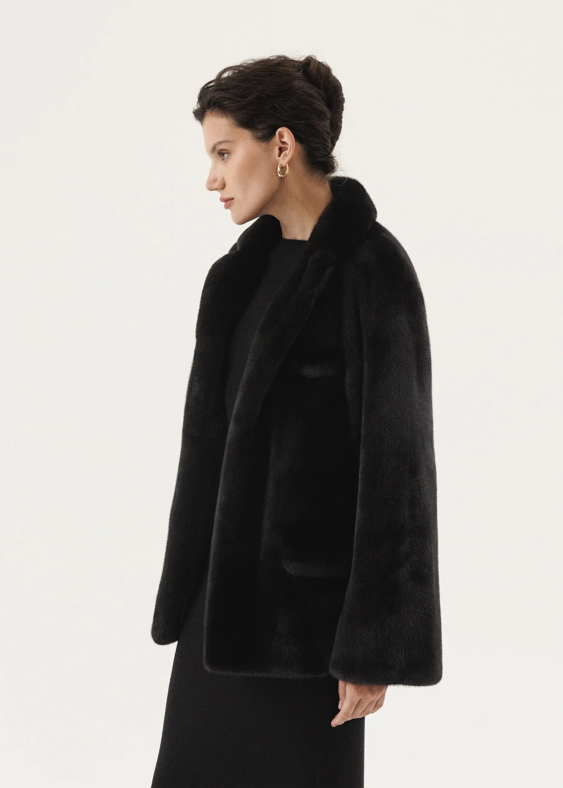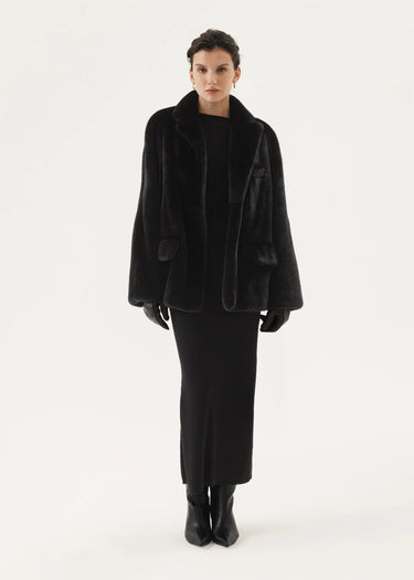 Veste classique en vison avec col rabattu anglais et ligne d'épaule tombante.