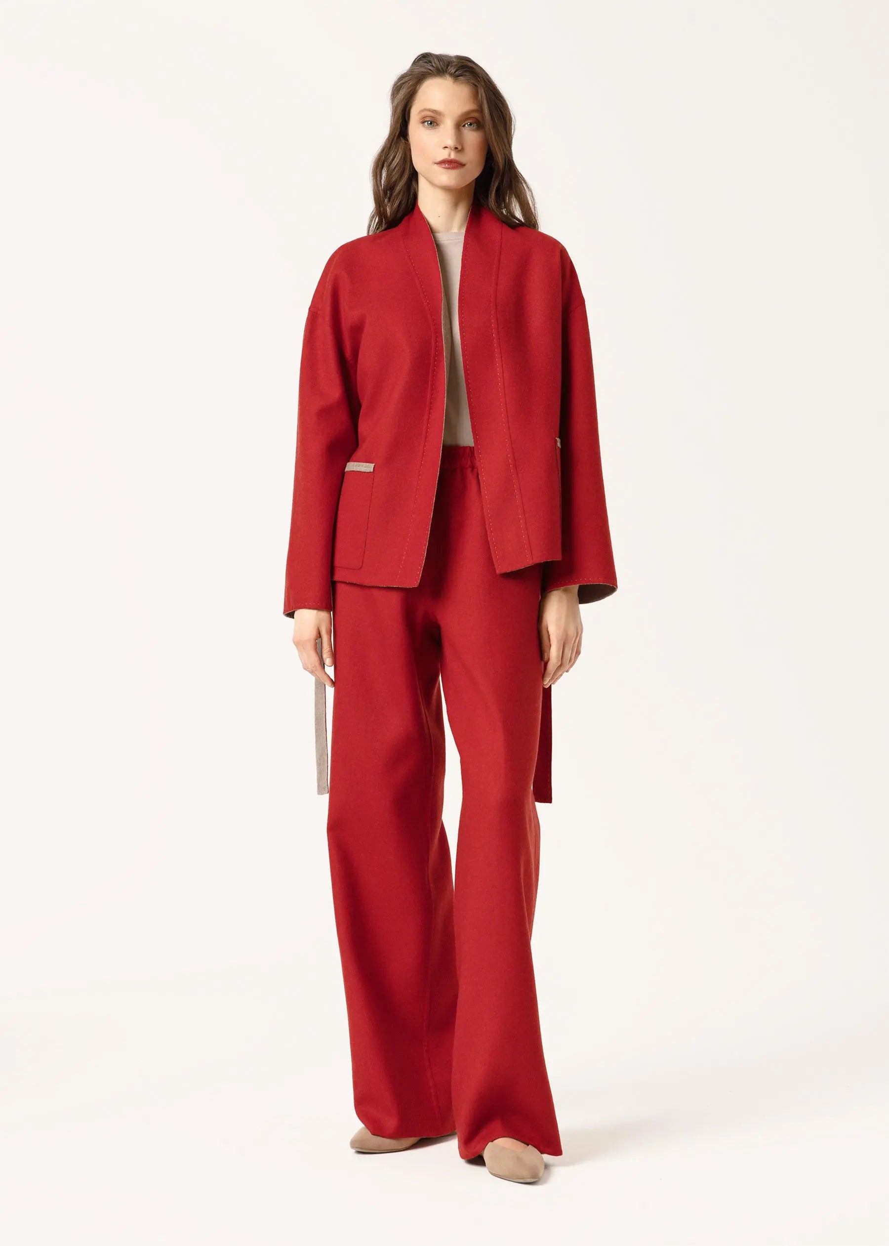 Le pantalon peut être complété par une veste réversible en cachemire de la même couleur.