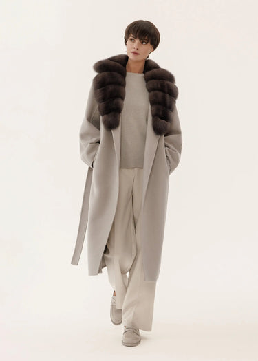 Manteau de coupe droite à col anglais classique en sable de Barguzin.