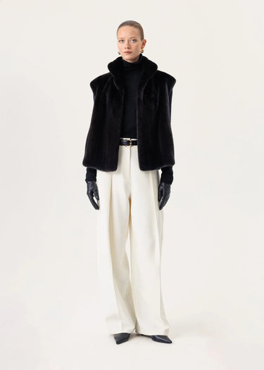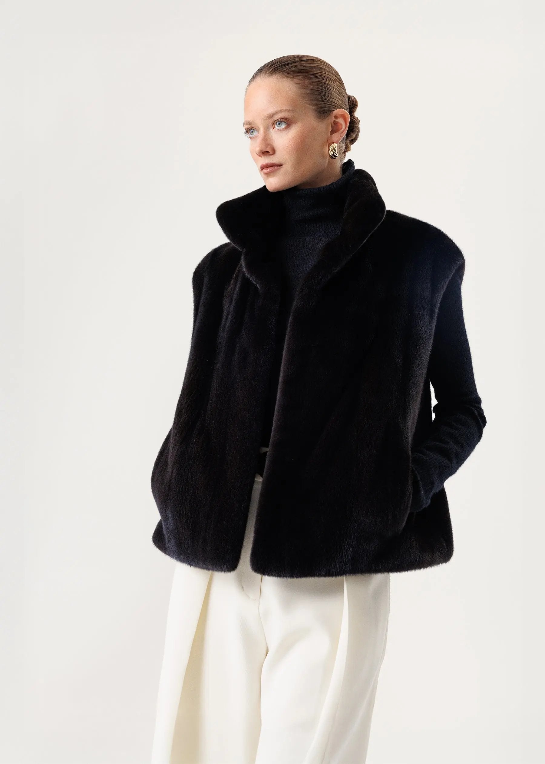 Le gilet en fourrure de vison raccourci d'une longueur de 60 cm convient aussi bien aux looks quotidiens confortables qu'aux tenues de soirée élégantes.