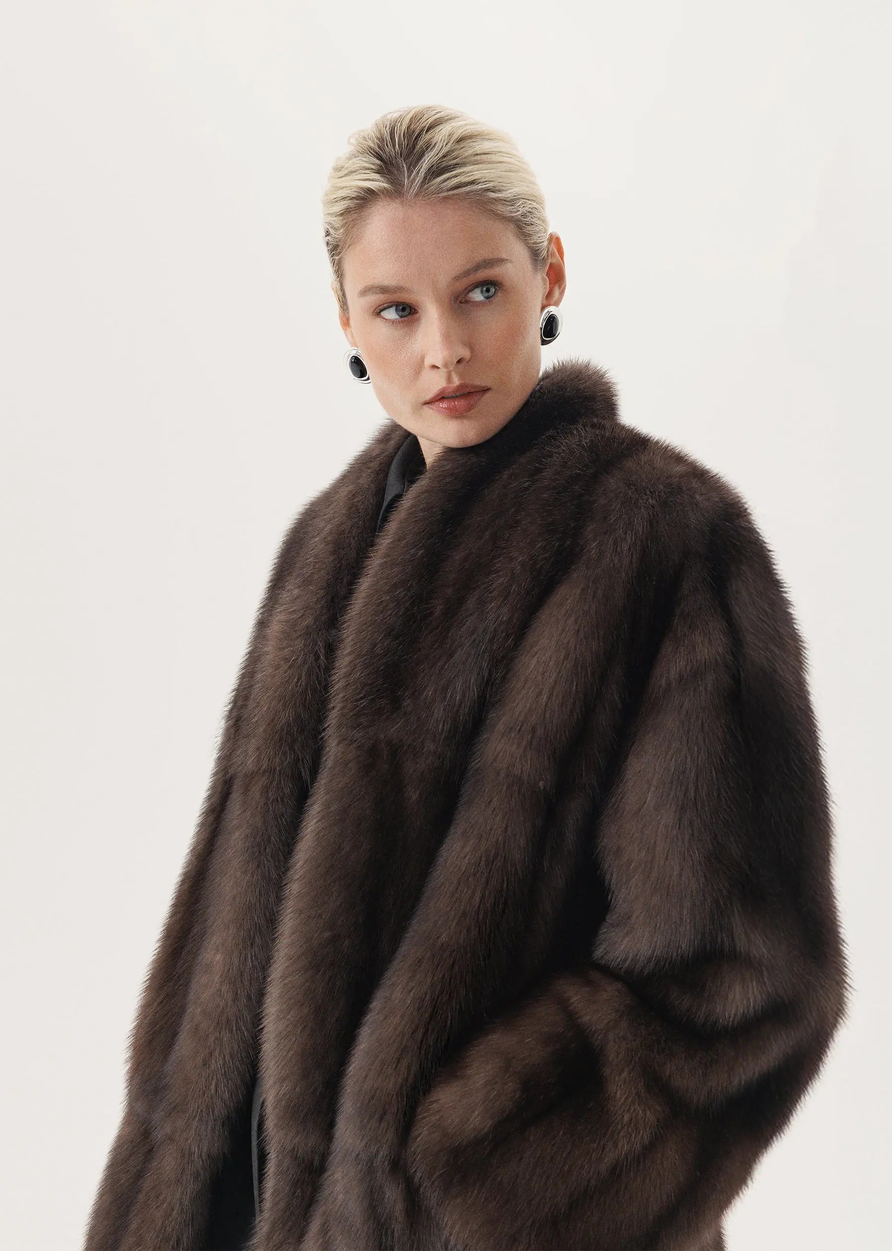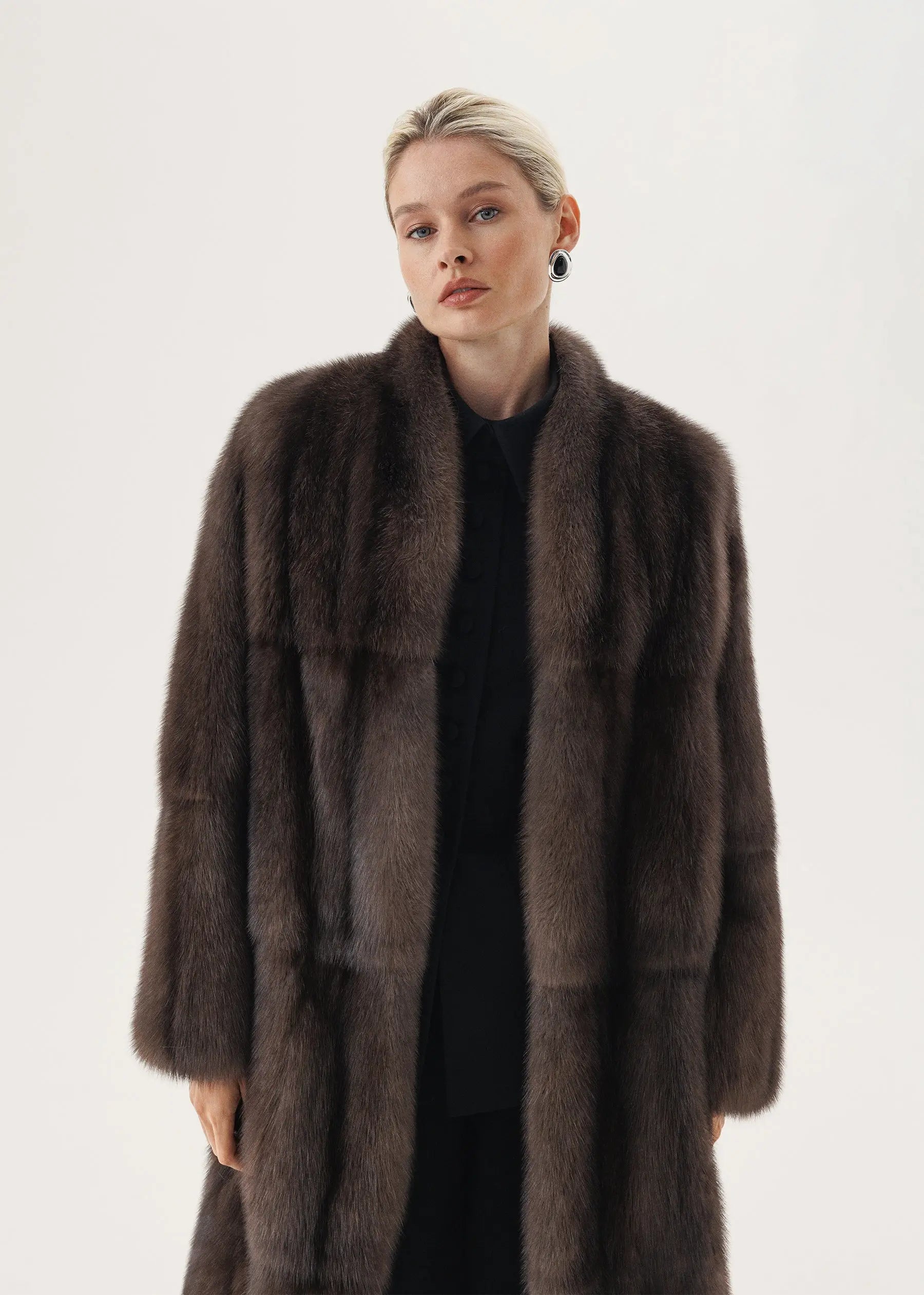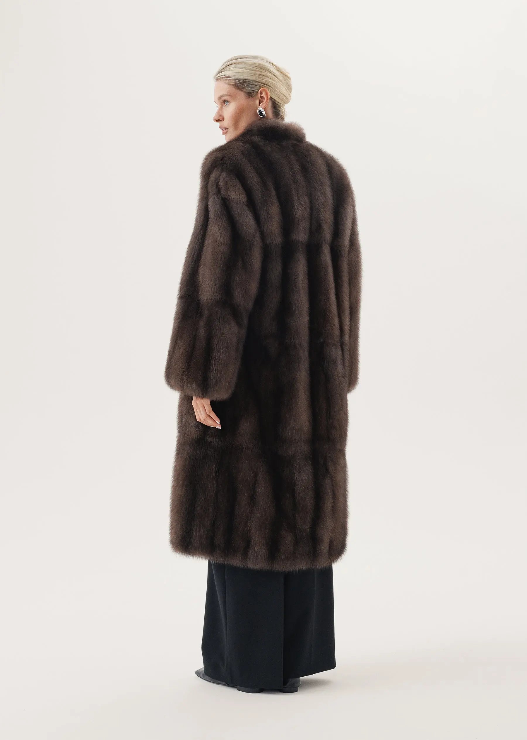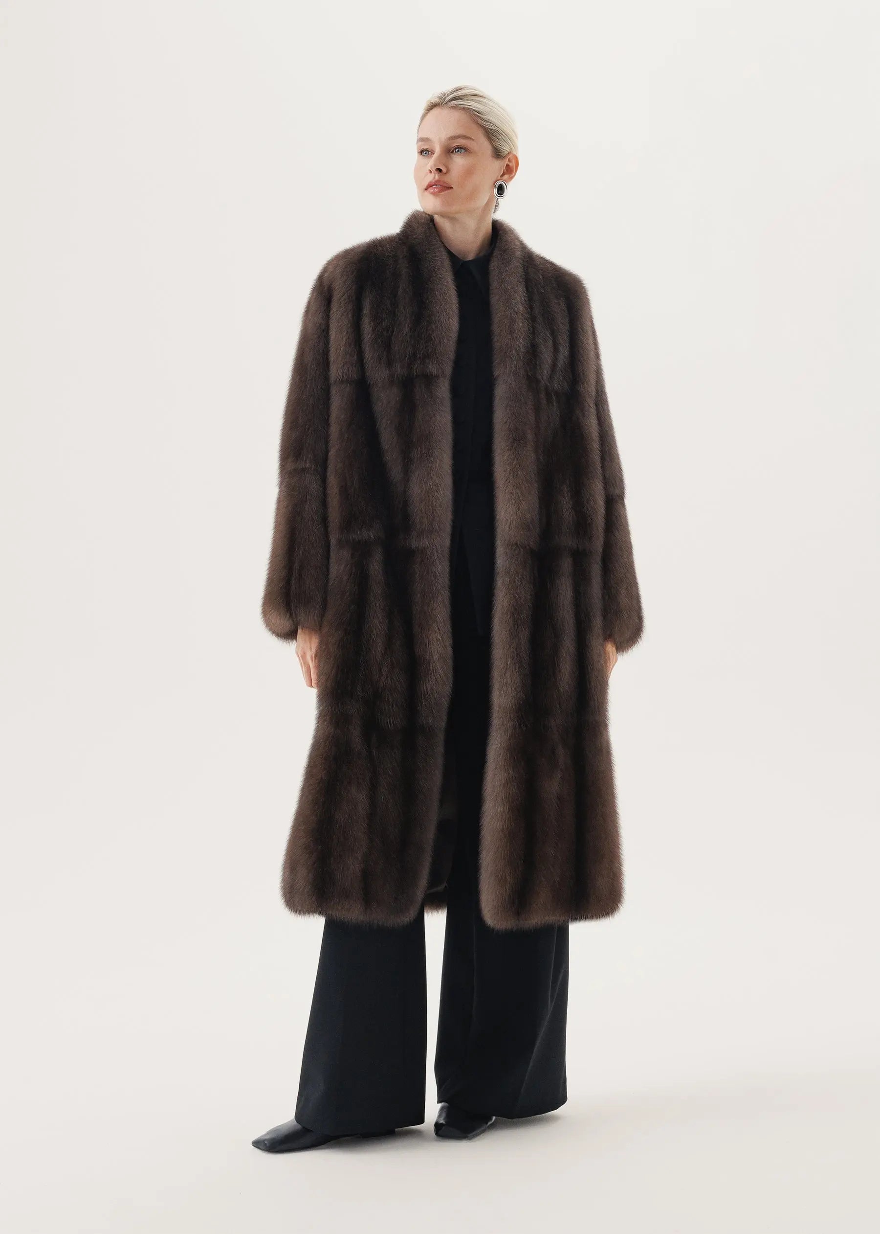 Manteau en fourrure de zibeline avec col montant et empiècement latéral