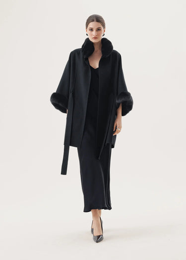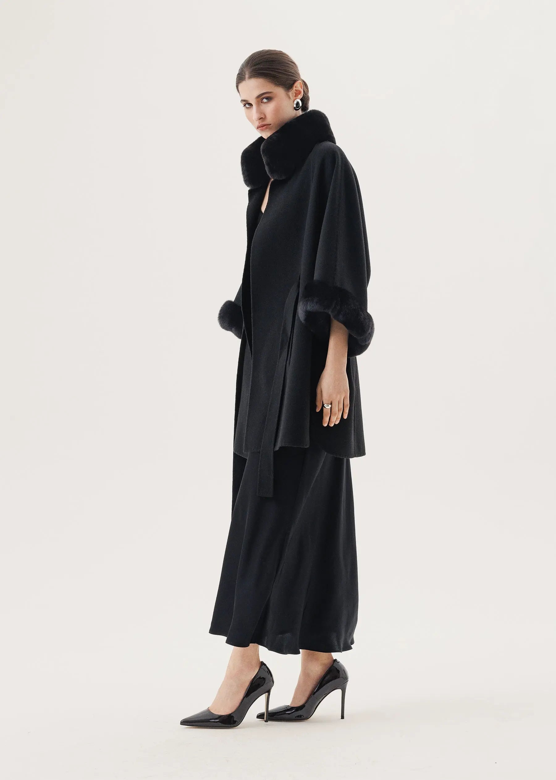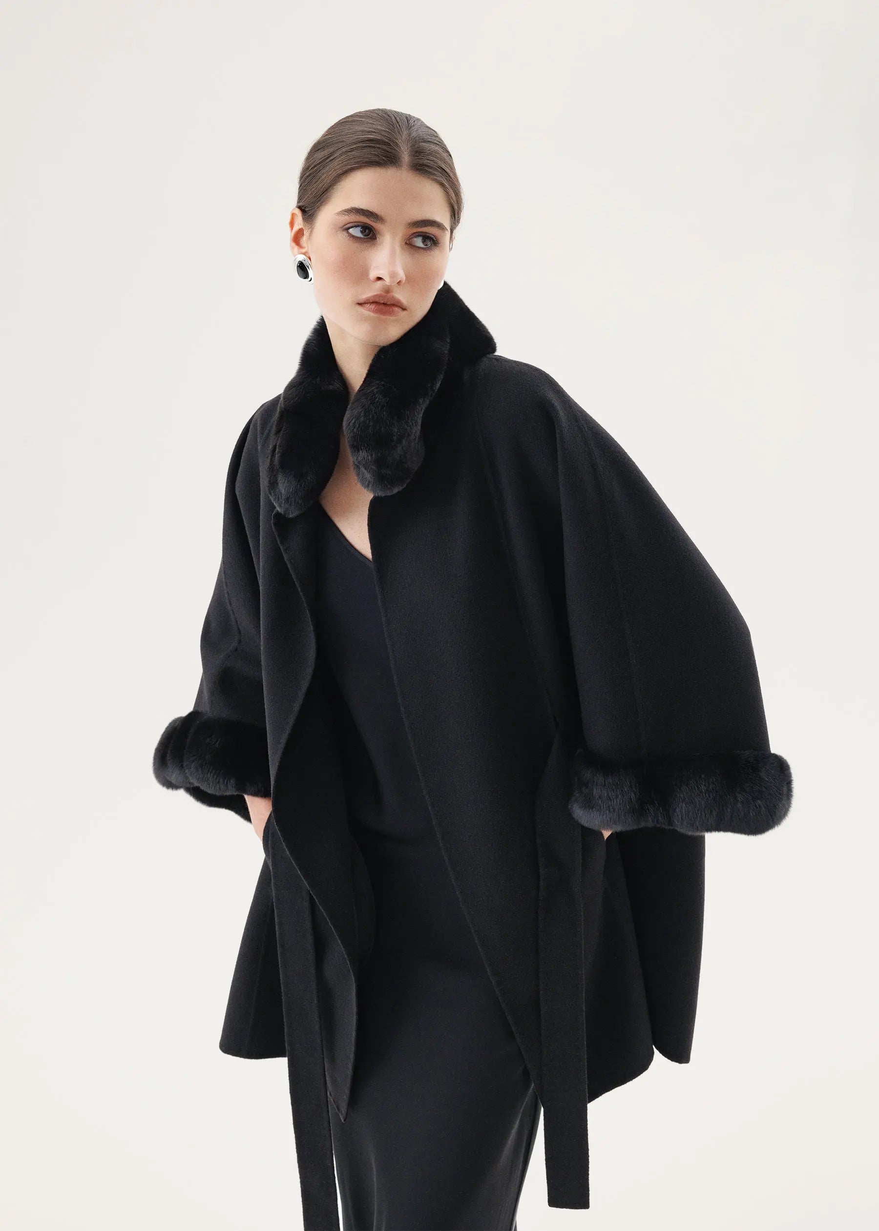 Cape aus Kaschmir mit schwarzem Chinchillafellbesatz