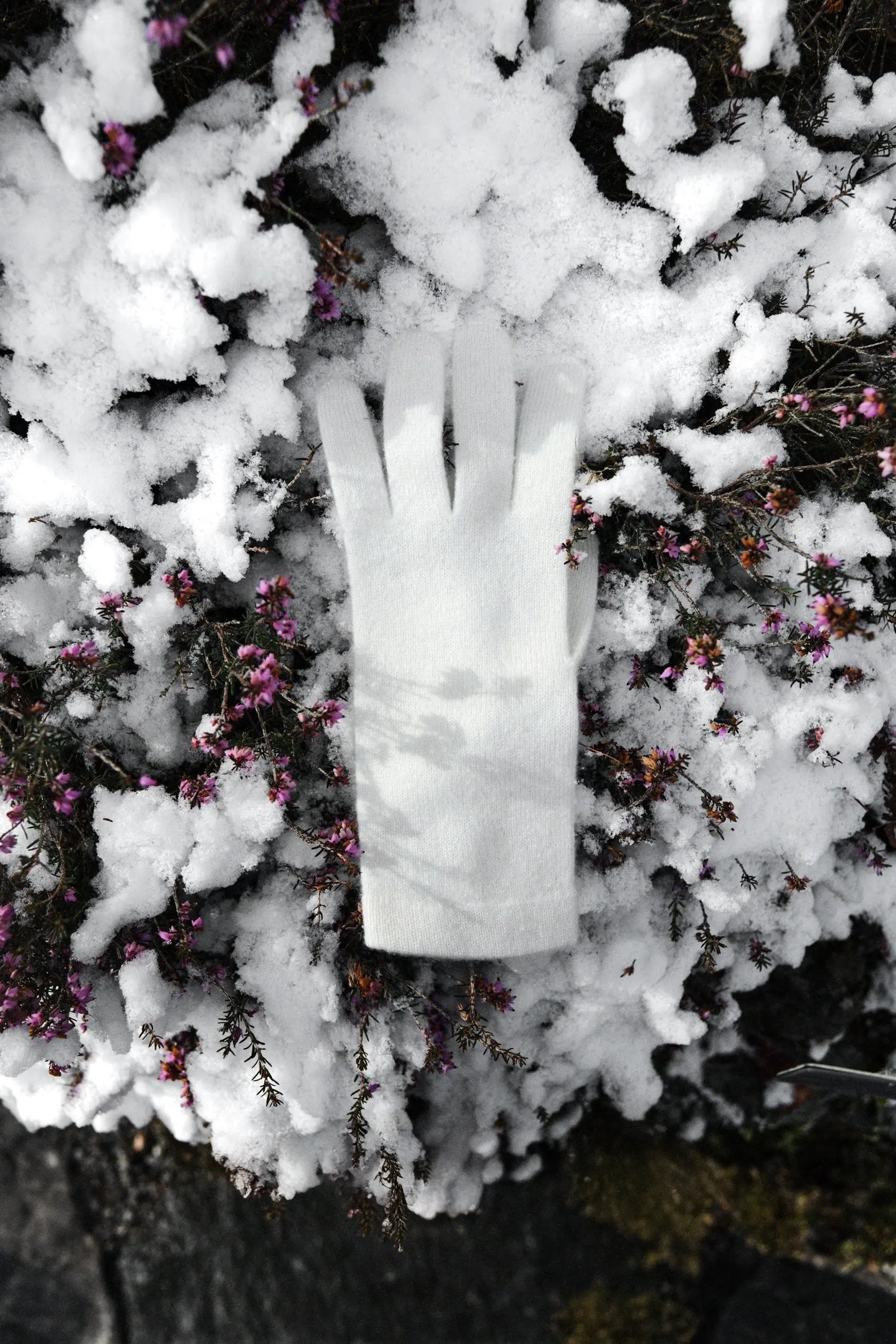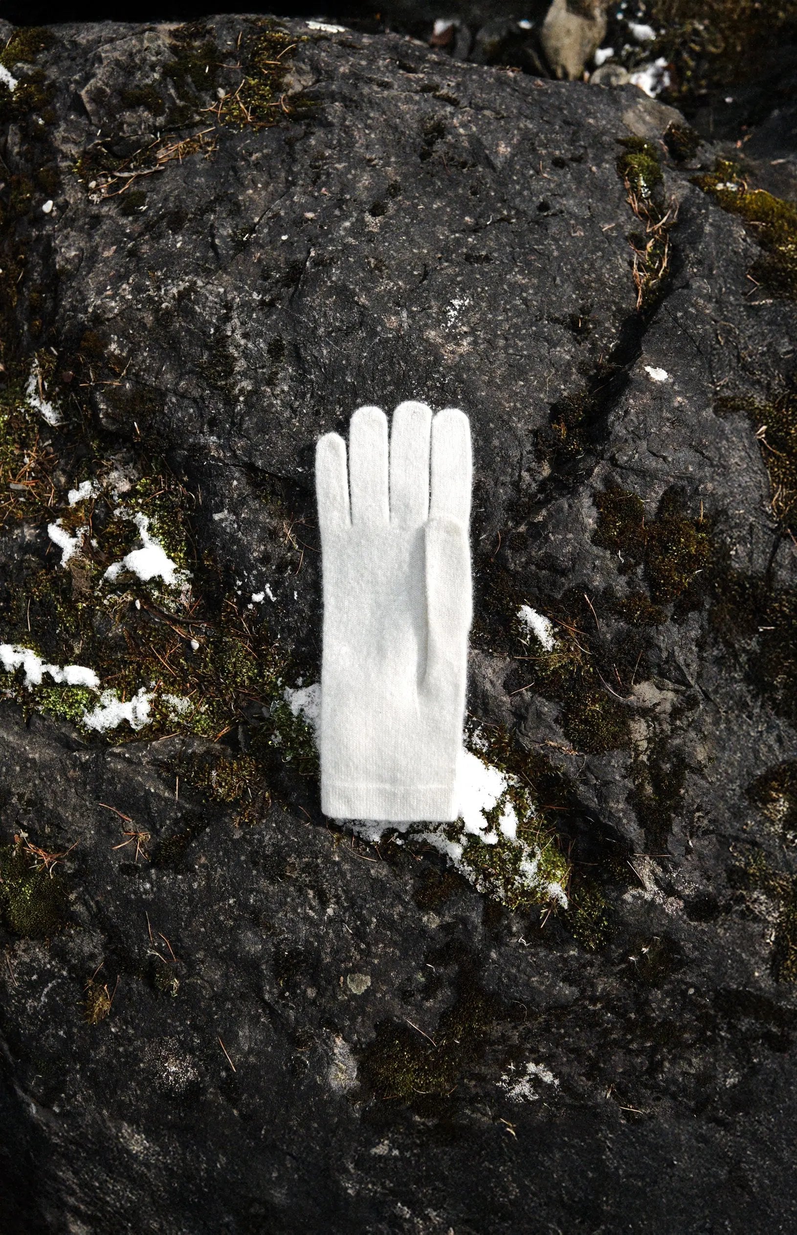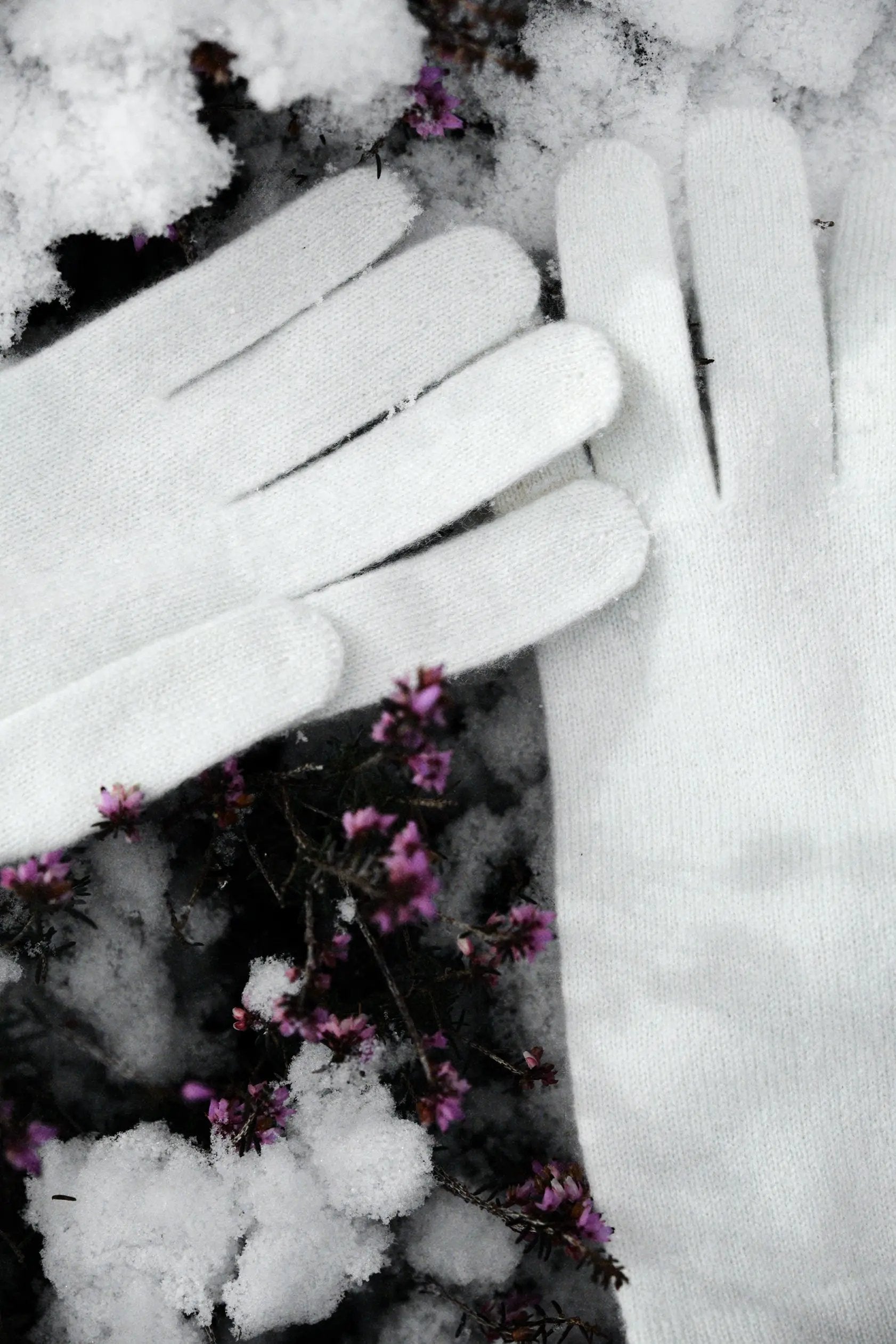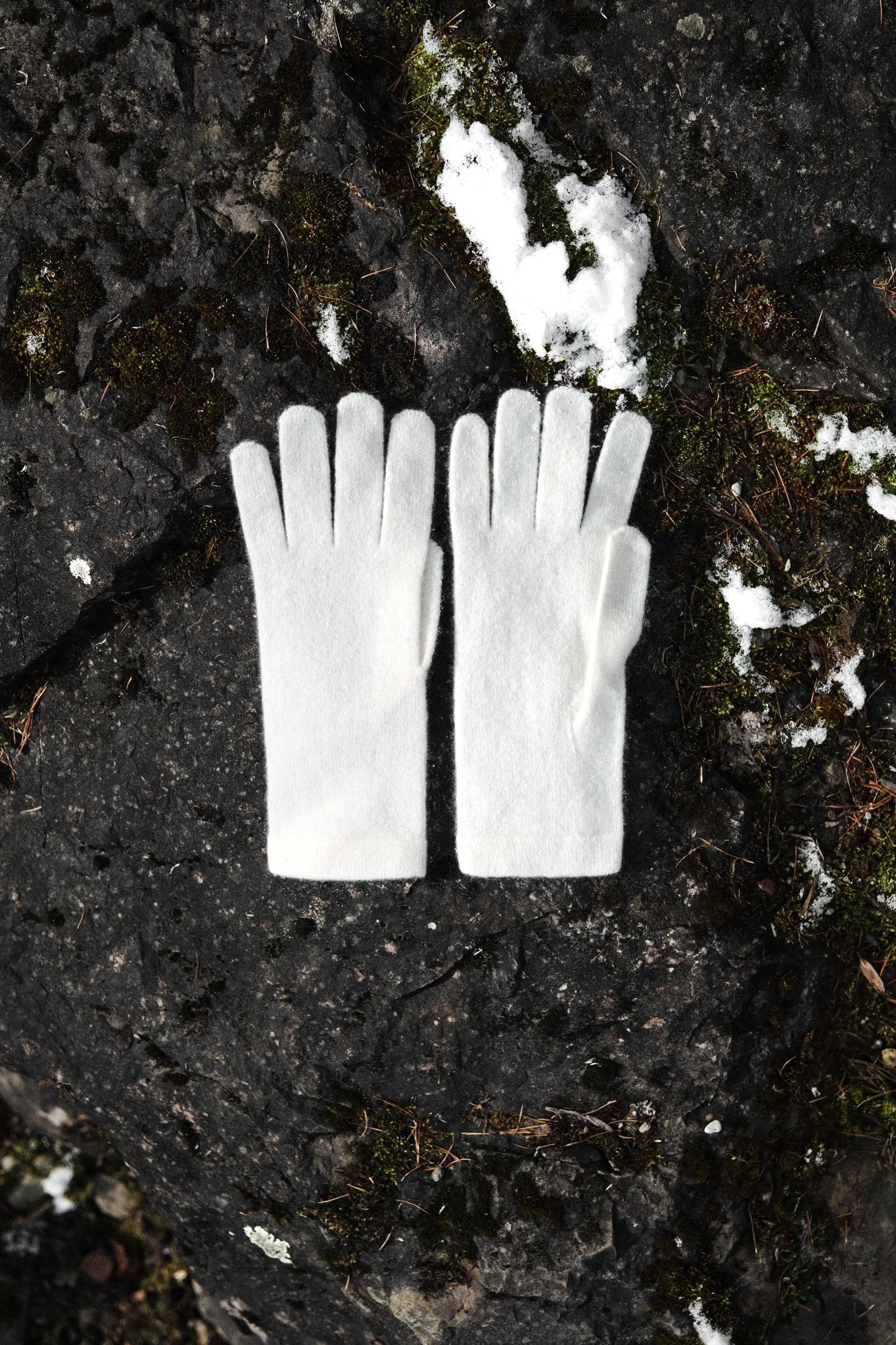 Weiße Kaschmirhandschuhe setzen einen leichten und zarten Akzent zu einem Winterlook.